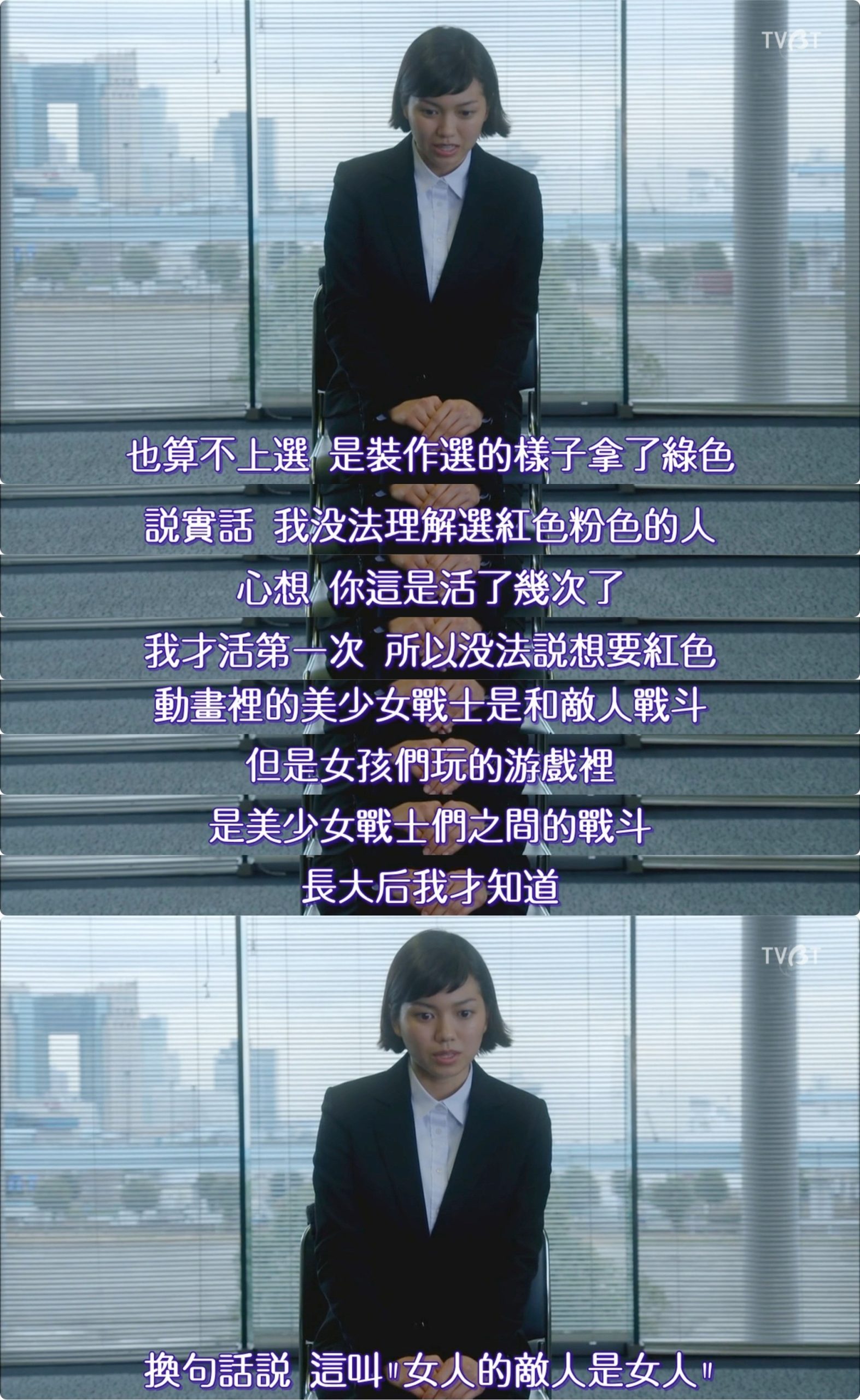 在中国,男人站在女人的视角去思考女性问题,一直是被人所诟病的症结。所以我很佩服日本的剧作家,也就是《问题餐厅》的编剧坂元裕二,他能用男性的视角去讲述女性的故事,却让人觉得这是从女人的视角看到的一切。很可惜,日本社会男尊女卑的情况更加严重,但他们还有人敢以这样的矛盾作为话题拍成日剧、写成小说、制成讽刺艺术。在中国,反而听不到反对的声音,倒是已经融入到了我们生活的日常,比如今年被诟病的春晚小品——「女性太漂亮会影响别人工作」,竟然成了春晚小品的包袱。