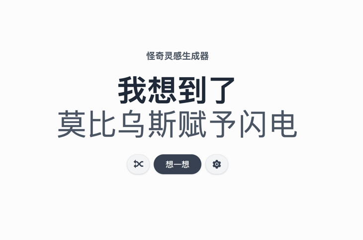 昨天闲逛博友的博客时,发现了一个让我眼前一亮的网站:怪奇灵感生成器。而且令人兴奋的是,当我第一次点进去时,它竟然给了一个与我相关的随机词。它一瞬间就在我的脑海里出现了一个奇妙的场景(在这里就暂时不说了,因为我决定把它作为恢复「刻意写作」的第一个灵感)