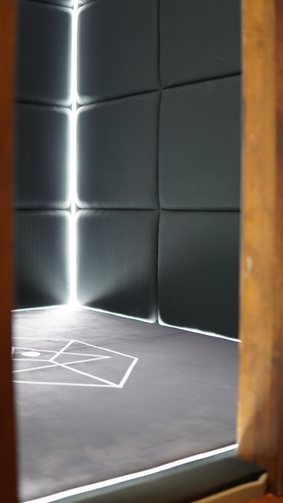 小黑屋更像是Backrooms里的这一层,在进门之前,你会用肉眼确认四壁的距离。一旦进入到全黑的状态,配合声光,你原本的感知会被人类对黑暗的原始认知所篡改——这个小黑屋会变成一个没了边界感的阈限空间,而仿佛深渊的空间里到底有什么——会因为每一个人的想象力、内心恐惧、期待、逃避而加工成各种意义上的具象——实际上里面什么都有。