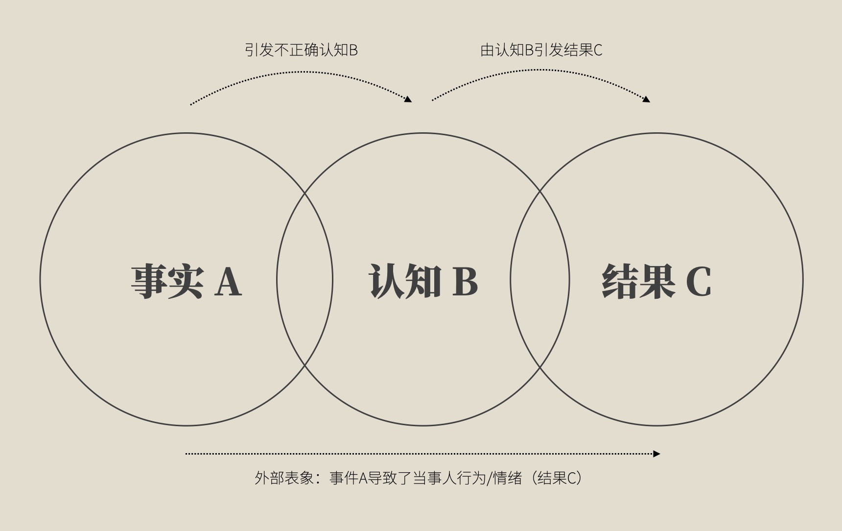 事实 A 引发的认知 B 在发生偏差后,导致了偏差行为结果 C,外归因就是将 A 和 B 混为一谈,将他们认为的外部环境当成了引导结果 C 的根本原因。一些外归因是用来逃避责任的,例如职场里常常遇到的那些一到关键时候会认为一切错误都源自于别人的人;而另一些外归因是用来逃避自我审视的,例如将原生家庭作为自己不幸的最终解释权,用原生家庭掩盖了自己应该做出改变和「长大」的责任,用来作为伤害他人甚至自己的借口和依据。