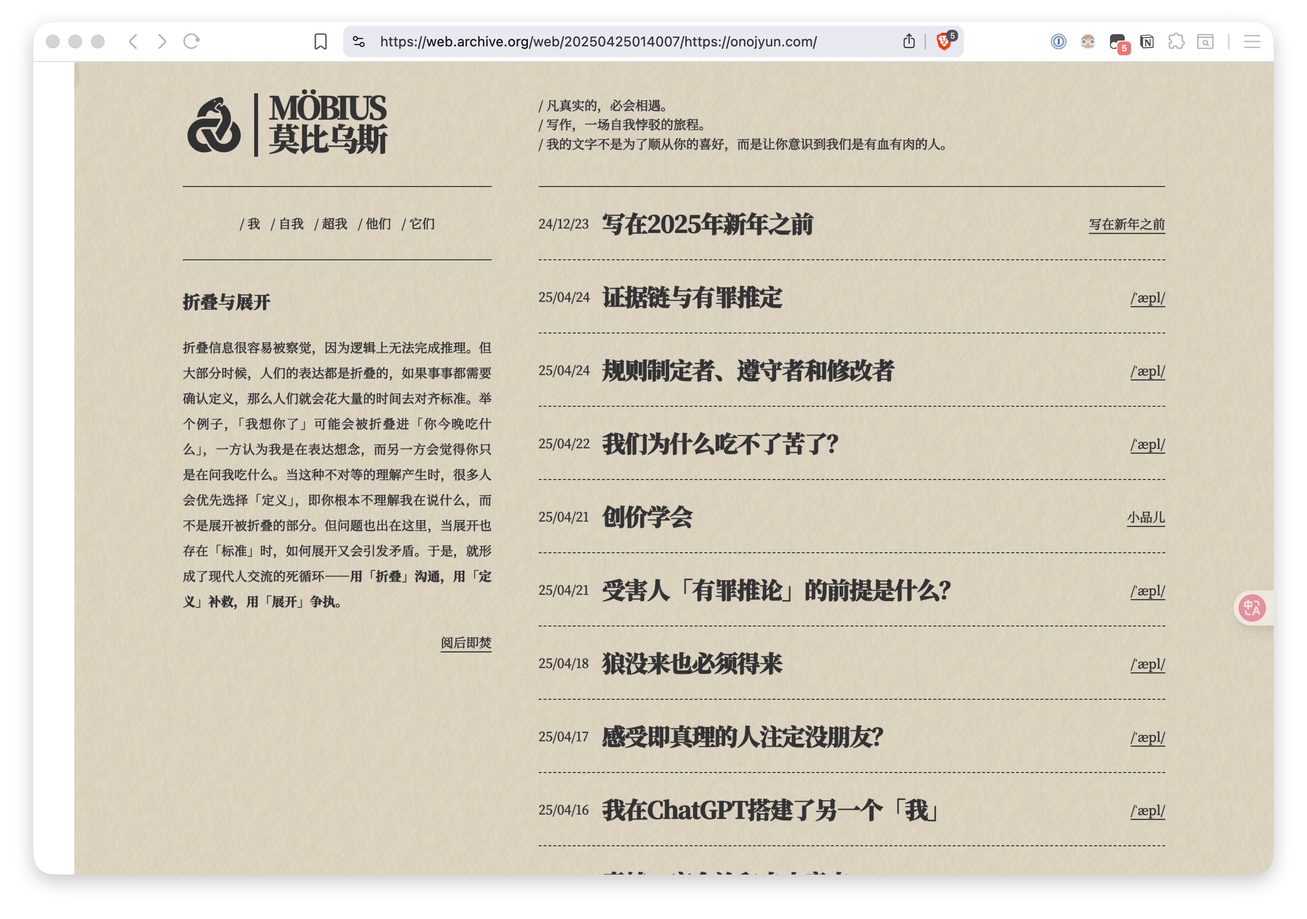 从时间逻辑上而言,莫比乌斯先于当事人的博客设计。